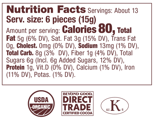 Made for baking or snacking, these creamy chocolate melts have a rich dark chocolate flavor with notes of brownie, cocoa, and vanilla with a hint of dried fruit on the finish.
