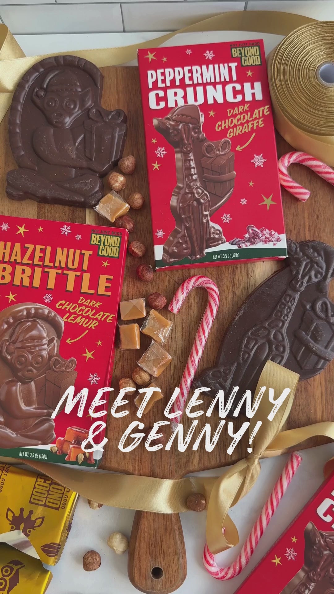 Meet Genny! Did you know that Uganda is home to more than half of the world’s wild Nubian giraffe population? Genny the Giraffe pays tribute to these beautiful creatures with ethically sourced and sustainably grown Ugandan cocoa studded with crunchy peppermint candy pieces. 60% Cocoa Dark Chocolate Single Origin & Direct Trade Cocoa from Uganda Made with 86% Organic Ingredients Non-GMO Project Verified